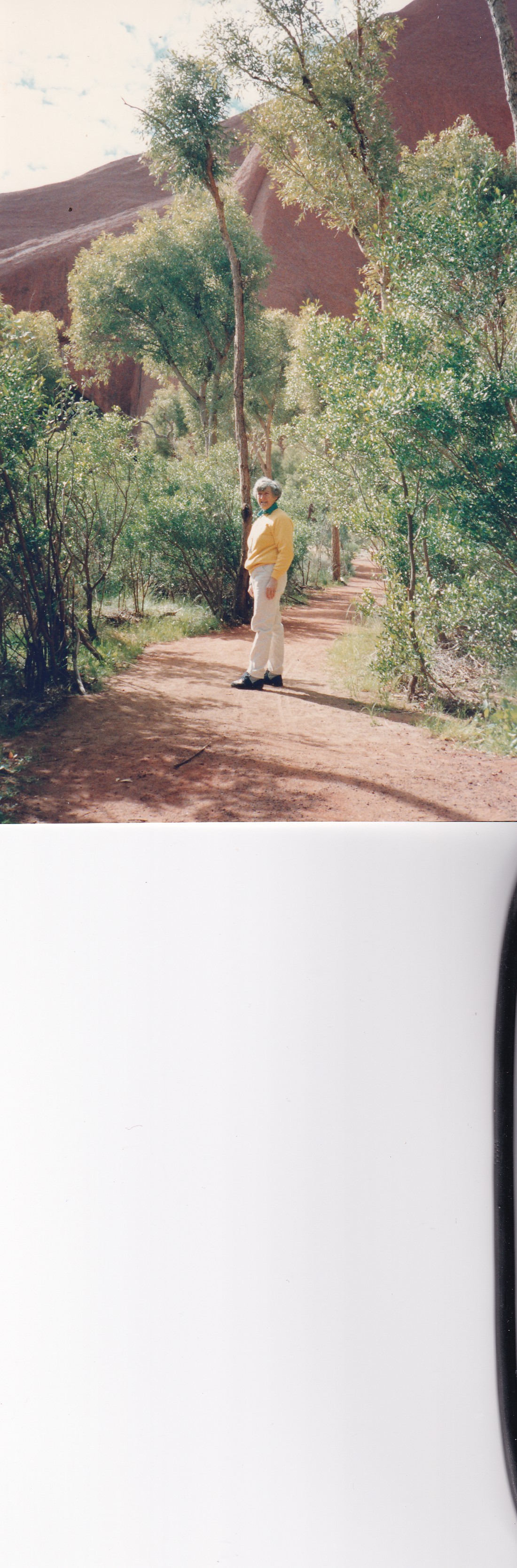 Up to catch the bus at 8.30am on Edible Desert Tour. Quite good but would have liked more input from Pintinjarra people Cassidy and Tikku. Saw weapons and bowls etc. water bowl, baby bowl, winnowing bowl, flynet and head band for carrying bowl. Man had human hair belt to carry boomerangs and 6 spears. Nulla Nulla – Kill carried round shoulders. Women provided 80% of food and 90% of time. Aphids on mulga – food for honey ants. Witchetty grubs in mulga root can tell by sawdust and noise if grub is there. Dig through crust with digging stick use winnowing bowl for shovel. Showed us winnowing of seeds. Drug made from powdered leaves from tobacco bush-ash from spinifex and leaves from the grevillia. Hold under lip and sucking through teeth. Used to keep up spirits on long walks, social drug. Man had a spear made from vine bound with kangaroo sinew moistened to bind. Resin on Nulla Nulla was from spinifex and fibre from mulga tree. Vine was straightened over a fire. Spear in one piece was punishment spear. Put through persons leg – if cant walk you fall behind and die. Serious crime through the kidneys. Water available in pig face like plant. Sheoak in fork of branches, root of tree. Came back and went for a drive to Uluru. Walked around base, quite impressive. Caves, gorge with waterfall when it rains. Back for lunch and then to Olgas or Kata Tjuta. Really wonderful. Tremendous number of plants, through valley of the winds and across middle basin to lookout. Very lush in the centre. Magnificent towering rocks at each side. Great boulders of conglomerate, very spectacular. Like walking through Uluru. Originally would have been a much larger version of Uluru. Really wonderful. Home by 6.30pm then dined at a Grill in Yulara. Good meal home to bed.