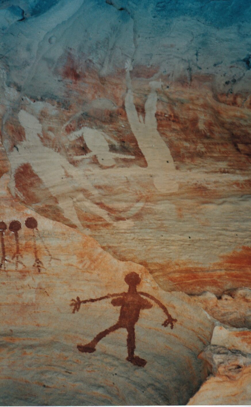 Left early for Lakeland and Laura. Open cropping at Lakeland interested Leigh road not improved. Got permission at Laura to visit art sites QuinKans. Drove back 12kms and walked around the galleries met a nice couple Jim and May and spent a pleasant morning inspecting the art. Not quite as good as Kakadu. Had lunch at the car park and set off on the worst road yet Laura round the top of Cooktown. Corrugations, bull dust, potholes we had the lot for most of the 140 kms. Around one corner when we were at the worst, we met 4 cyclists pushing uphill. Arrived very tired, dirty and disgruntled at Cooktown. Going out for tea.