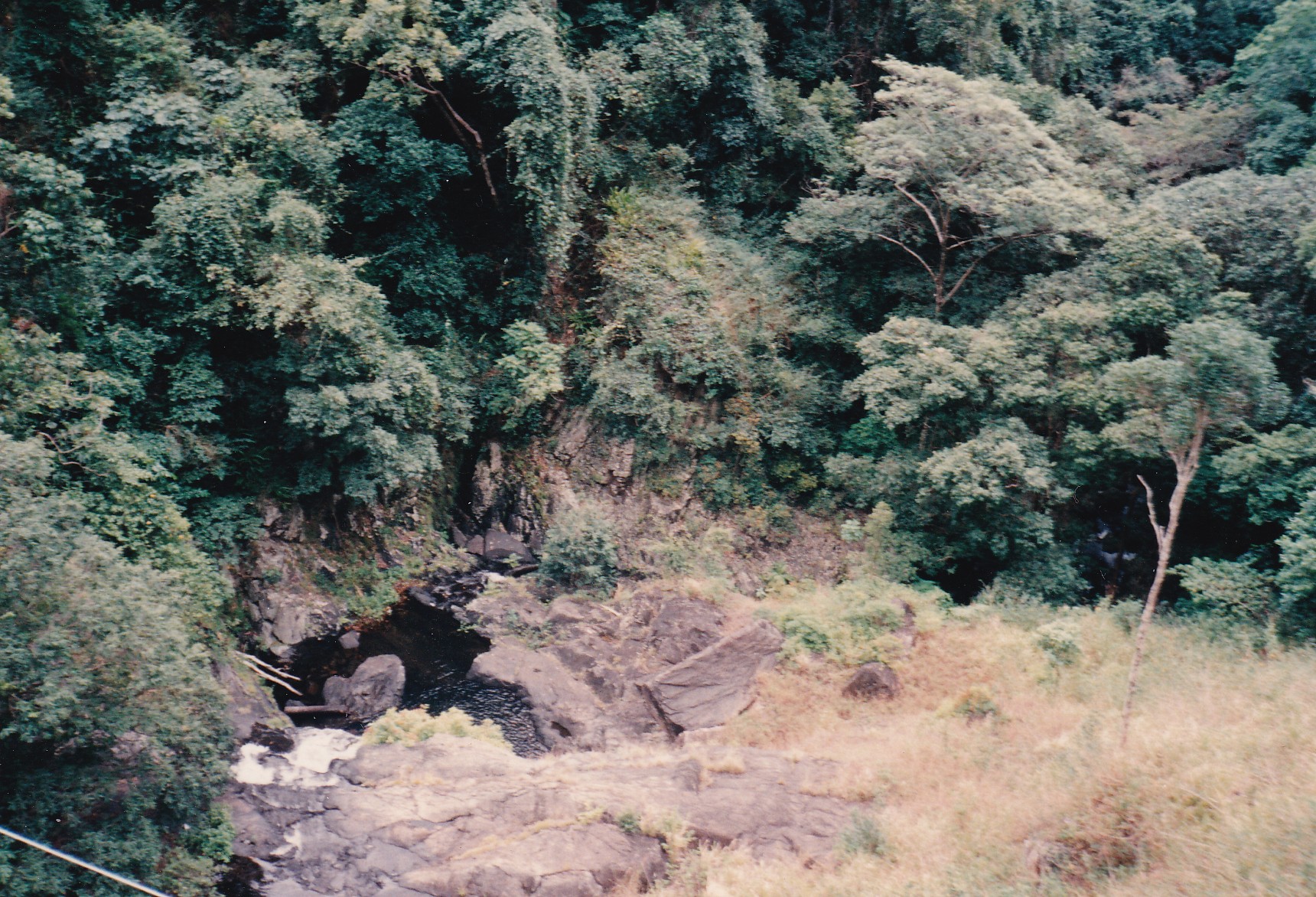 Were up to leave early but by the time we compared notes with the bus man who came to see how our reef trip went, then we inspected dthe tent attached to a Toyota like ours that was very well fitted out. Then a Swiss boy came over tjo ask about our travels and we talked to him for quite a while. Just made it to Kuranda for the aboriginal dance thearte. It was excellent Kuranda looked a rather nice tourist town. Boarded the train while Leigh drove to Cairns. Truly magnificent scenery on the way down. Barron River Falls and hydro scheme to the sugar fields and the sea. Really enjoyed the trip. Looked around Cairns and then came throughrain down the coast, couldn’t get in at Cardwell and went on to Ingham ended up way off the road at Halifax. Actually Taylors Beach nor on the map.