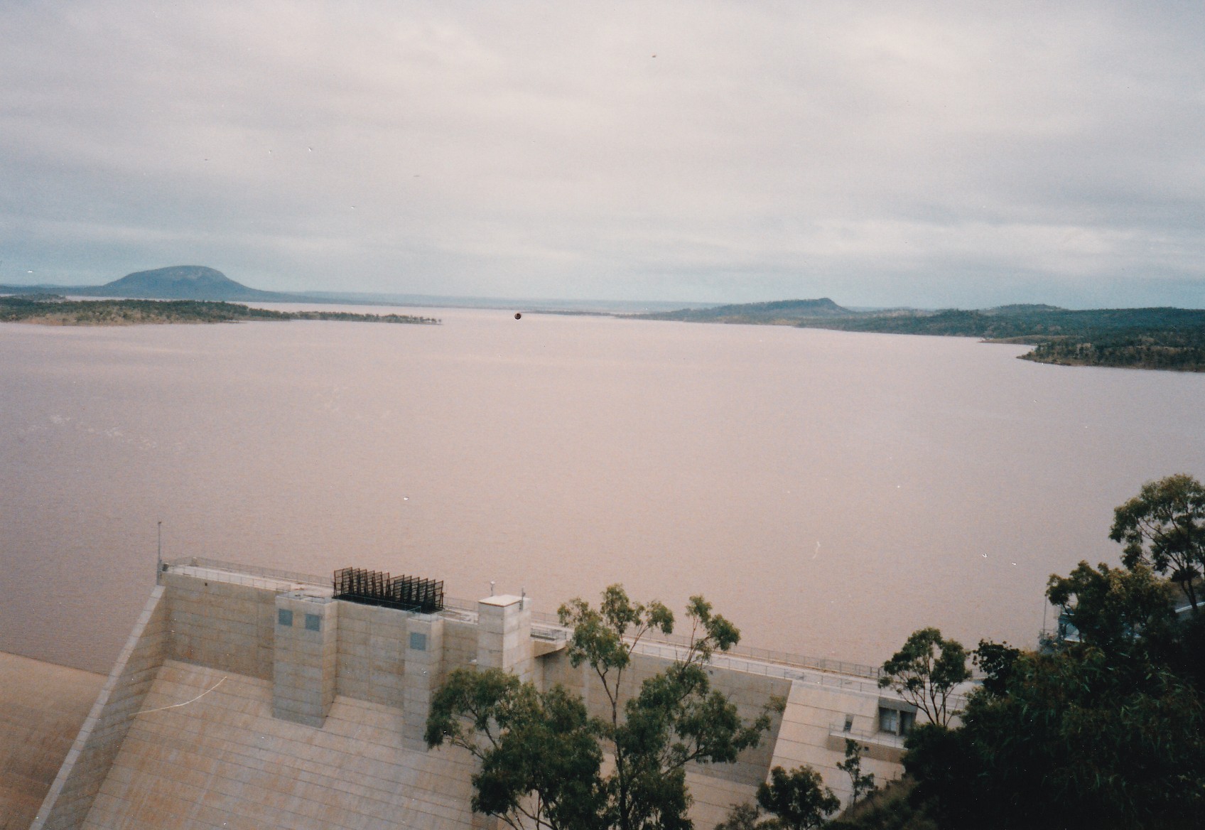 Sun rose lighting up the lake, quite beautiful. Had breakfast on the veranda near the pool. Walked up to see campo-tel. Most impressed with the lodge, good gardens, tennis court, variety of accommodation very nice people. Joined a tour of the dam. We went right down into the wall most comprehensive tour. Shaw was a knowledgeable fellow. All the workings we saw took about 1.5 hrs but well worth it. Grabbed bits for lunch and set off back on the bad roads again. Took forever to get to Mt Coolan, Mt Douglas didn’t get to bitumen till 80km from Clermont. Came in in the dark and raining. Rang Joel for his birthday. Morris already looking for us. Had pizza for tea. Lots of washing to do and dry.