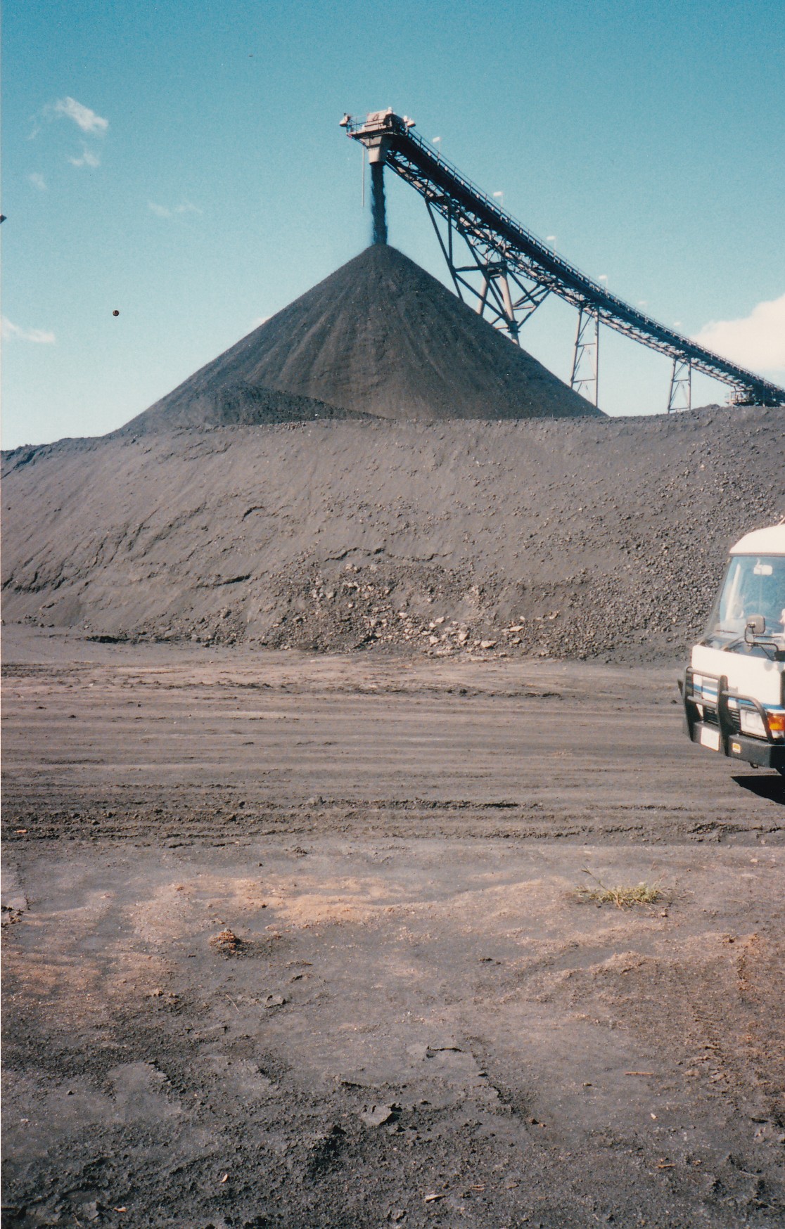 Started early this morning to go looking for coal mines. Started from Capella and drove into the countryside but they seem to have their coal mines carefully screened by farmland and trees. Eventually we did a tour of Gregory coal mine. This was rather good. Saw the huge trucks carrying 136 tons of coal, the coal face under the overburden, the huge draglines working each shovel lifts 15 tons of dirt and there was a blow off of the coal face. Then the crushing, washing etc. The road grids where the coal is tipped from the trucks. This didn’t finish until nearly 3:00 so then we drove to Emerald Railway Station. Had a puncture in the trailer tyre so we had both replaced with a second hand pair. On again through Springsure truly beautiful mountains and into the dark. Stayed at Moura arrived 8:00 very nice preople Colleen and Jack Bradley. He came and talked for ages.