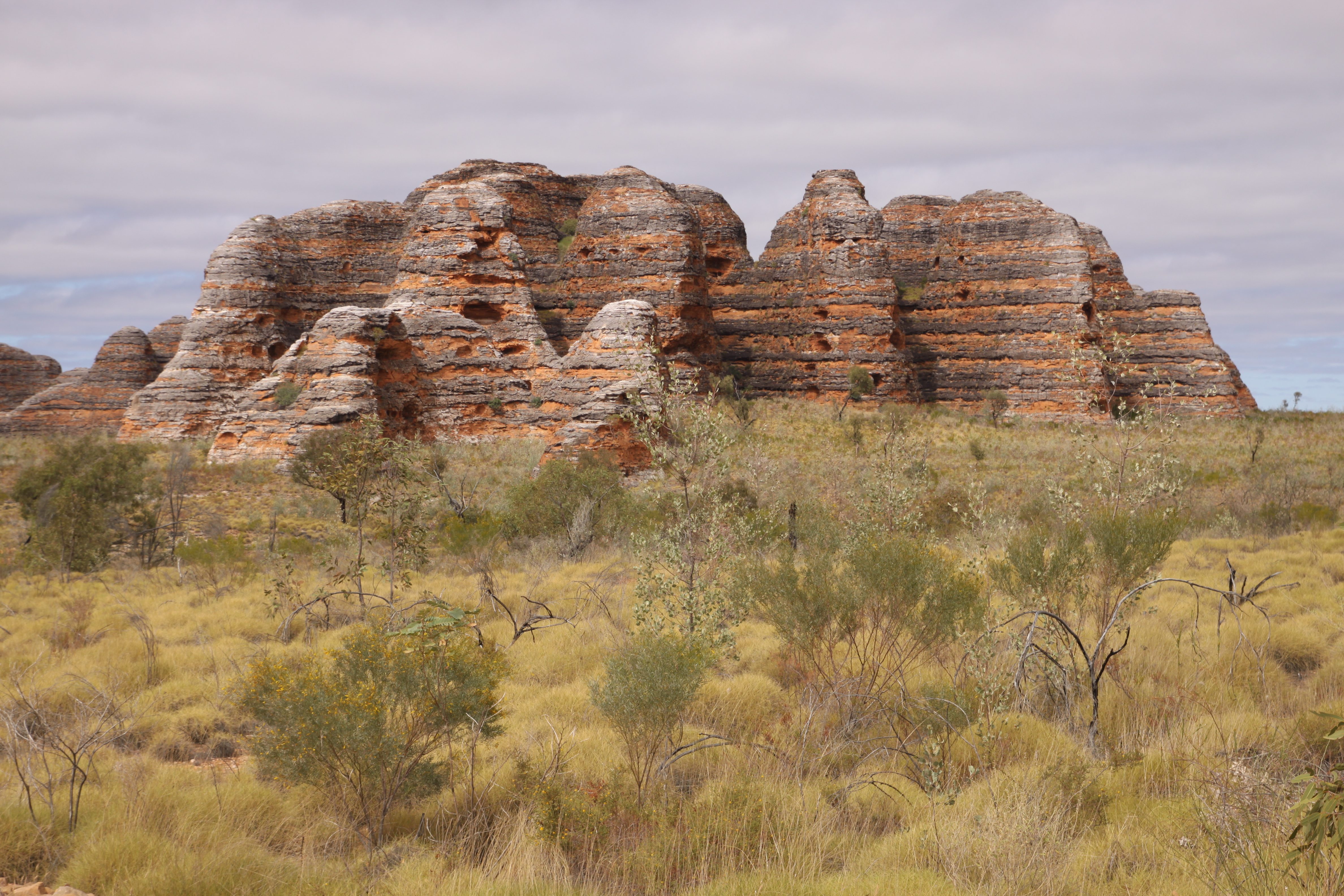 Left Fitzroy Crossing on the 13th. Investigated one possible wayside stop at Margaret River but looked crowded at 1pm, interesting bridge forms the entrance more like a broken down causeway. Spent little time in Halls Creek – looked like a fairly rough town lots of mesh. Passed the top end of the Tanami track – sign said it was closed due to recent rain. Finished the day at the privately run station stay style caravan park at the entrance to the Bungle Bungles (Purnululu National Park). Basic facilities, each bathroom building houses two bathrooms, corrugated iron walls, no lining and no roof, each bathroom has solar powered light, toilet and shower with no dividers, if your lucky the gas cylinder provided for each buildings hot water is still charged.