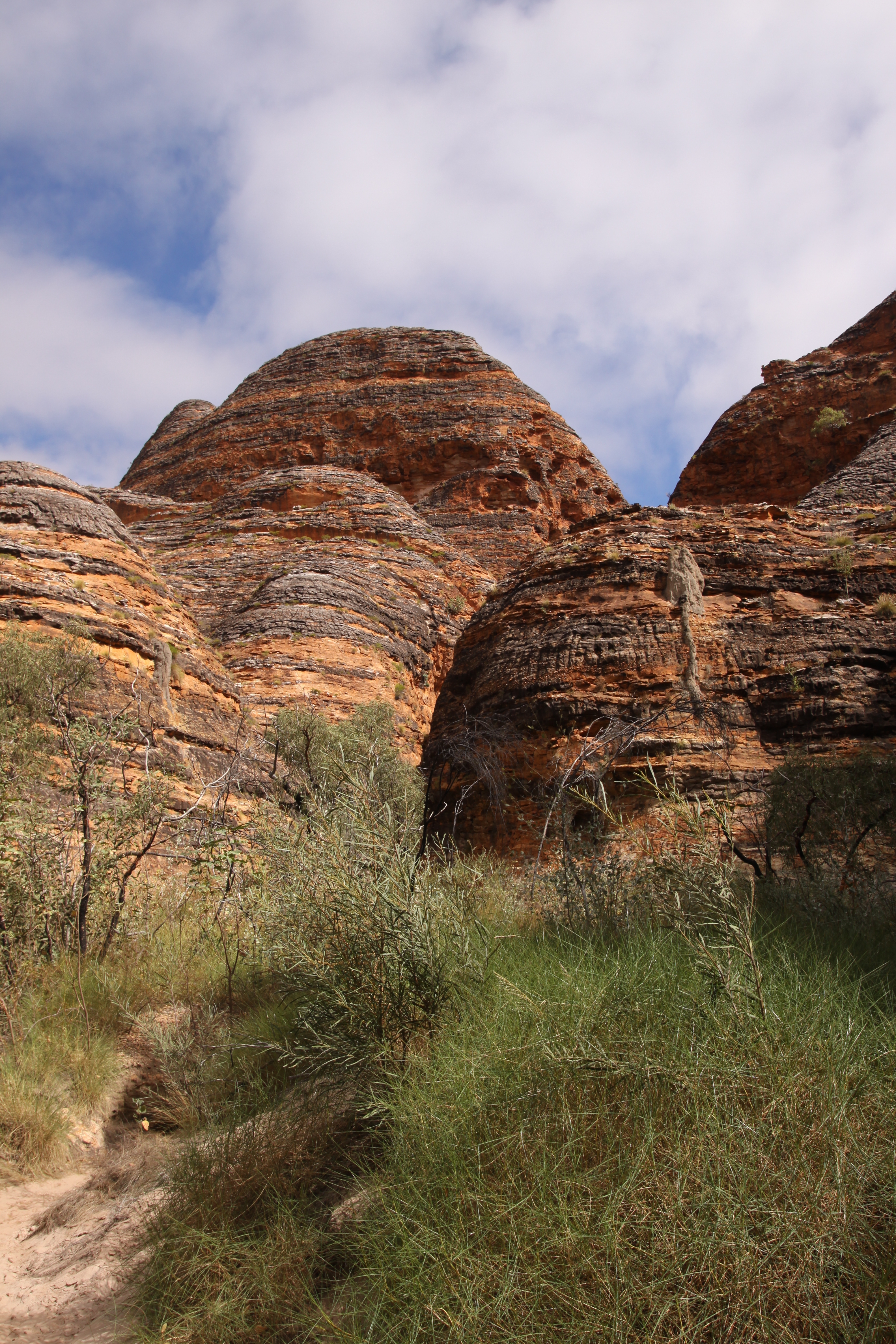 Left Fitzroy Crossing on the 13th. Investigated one possible wayside stop at Margaret River but looked crowded at 1pm, interesting bridge forms the entrance more like a broken down causeway. Spent little time in Halls Creek – looked like a fairly rough town lots of mesh. Passed the top end of the Tanami track – sign said it was closed due to recent rain. Finished the day at the privately run station stay style caravan park at the entrance to the Bungle Bungles (Purnululu National Park). Basic facilities, each bathroom building houses two bathrooms, corrugated iron walls, no lining and no roof, each bathroom has solar powered light, toilet and shower with no dividers, if your lucky the gas cylinder provided for each buildings hot water is still charged.