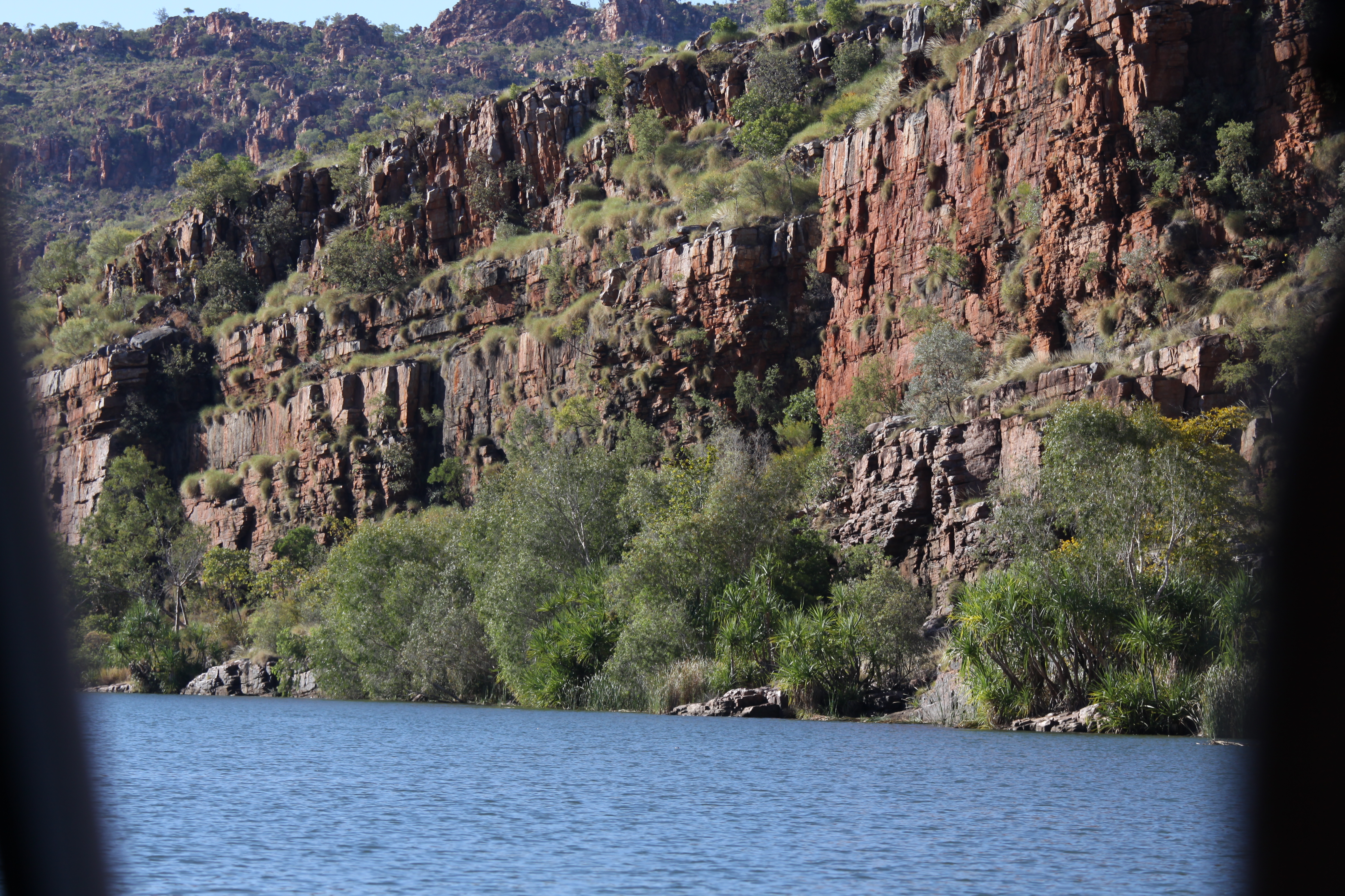 Leisurely Boat trip today up the Ord river, otherwise known as Lake Kununurra, to the Argyle Dam and back. At the start of our trip is the Ord Diversion Dam which keeps the stretch of river we are on at a relatively even height all year round. The trip is 55km in each direction. Lots of fresh water crocodiles but hard to see and photograph. As you get further upstream the rock canyons get more and more majestic and awesome. The bird life is prolific and we diverge up small creeks to observe many types of water birds and others.