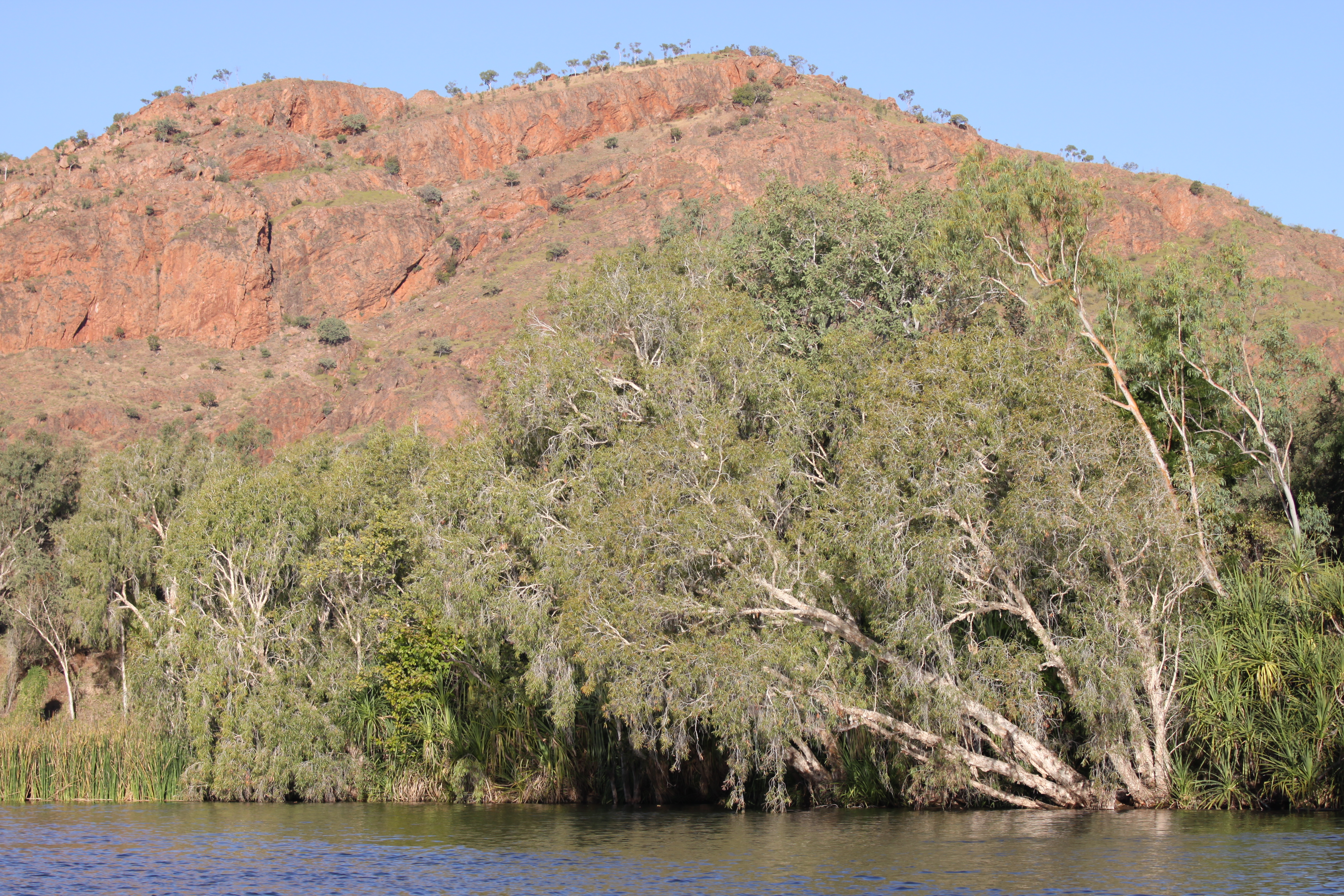 Leisurely Boat trip today up the Ord river, otherwise known as Lake Kununurra, to the Argyle Dam and back. At the start of our trip is the Ord Diversion Dam which keeps the stretch of river we are on at a relatively even height all year round. The trip is 55km in each direction. Lots of fresh water crocodiles but hard to see and photograph. As you get further upstream the rock canyons get more and more majestic and awesome. The bird life is prolific and we diverge up small creeks to observe many types of water birds and others.